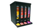 This model features a unique vertical display window for each slot so you can see exactly which flavor you’re grabbing.